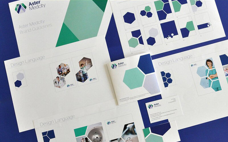 Consistent layout patterns using hexagonal and angular shapes for strong visual continuity